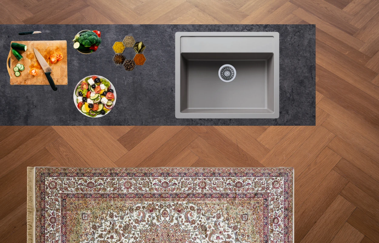 65x49 cm antrasit antibakteriyel kaşıklık, 60x40 cm'e kadar istediğiniz ölçüde ücretsiz kesim, çekmece içi kaşıklık
