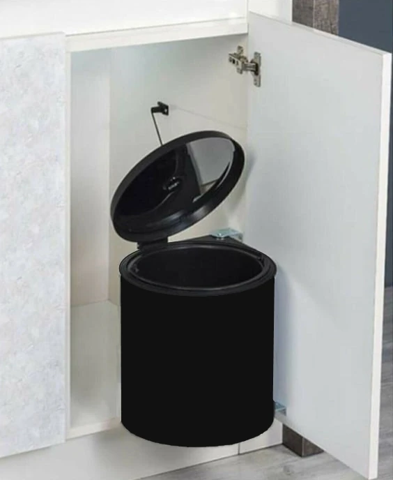 Cassone DOLAP İÇİ MAT SİYAH METAL LUKS ÇÖP KOVASI 11 LT , OTOMATİK AÇILIR KAPAKLI