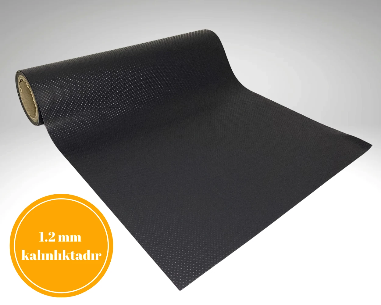 48 cm x 1 m - siyah suni deri, kumaş desenli, Çekmece İçi Kaydırmaz Halı , çekmece halısı